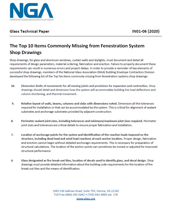 Top 10 Items Commonly Missing From Fenestration System Shop Drawings Downloadable Glass Org